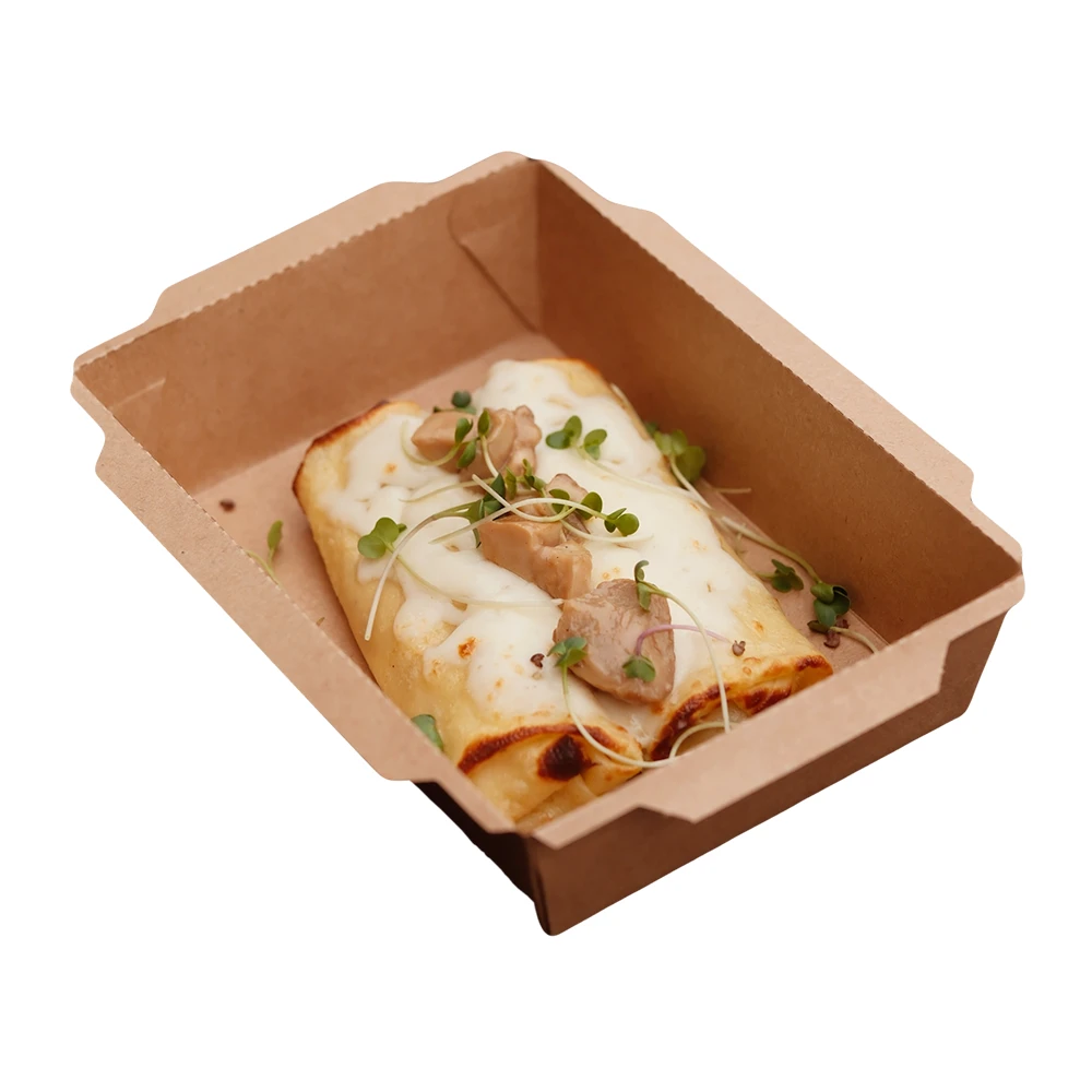 Тонкі млинці з ніжною сирною начинкою, подаються з ванільним соусом та карамелізованим бананом.