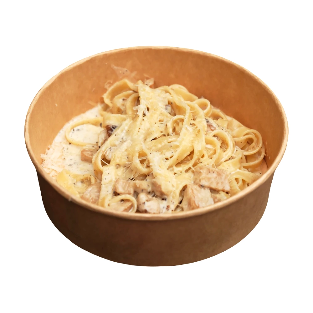 Ароматна паста з білими грибами та ерінгами у вершковому соусі з трюфельною сальсою й пармезаном.